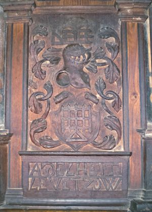 Die Kanzel mit Wappenreliefs am Korb