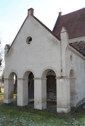 Ansicht von Norden - die umgebaute Nordsakristei mit Glockenstuhl