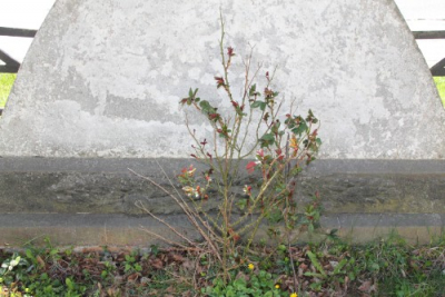 Die Reste des ehemaligen Kriegerdenkmals wurden in die Kirchhofmauer integriert