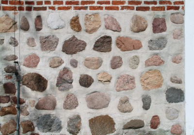 Das Feldsteinmauerwerk weist Ritzquaderung auf