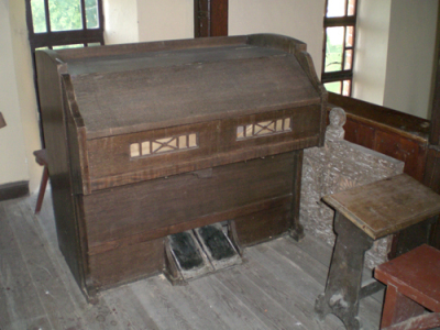 Orgelempore Vom Altarraum sieht man an der Westseite des Kirchenschiffs auf die ehemalige Orgelempore mit dem Aufgang an der Südseite. Die Kirche verfügt heute leider nicht mehr über eine Orgel. Stattdessen erhielt sie 1948 ein gebrauchtes Harmonium als Ersatz für die im Krieg zerstörte Orgel. Bei dem Instrument handelt es sich um ein sogenanntes Lindholm-Harmonium, leider ist auch dieses seit 1996 nicht mehr bespielbar. Die Harmoniumfabrik von Olof Lindholm brachte es einst zu Weltruhm. 1894 wurde die Firma von dem aus Schweden stammenden Fabrikanten Lindholm gegründet, nachdem 1911 die Familie Weischeit die Firma übernahm, stellte sie im Jahr 1990 die Produktion ein. Das Holzgehäuse des Marihner Harmoniums ist stilistisch dem Jugendstil zuzuordnen, die Zugknöpfe weisen italienische oder französische Beschriftungen auf. Das Baujahr des Instruments ist nicht bekannt. |