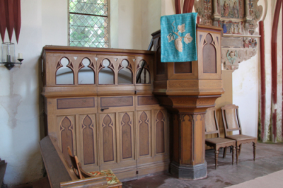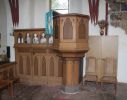 Die schlichte neugotische Kanzel mit Predigerverschlag