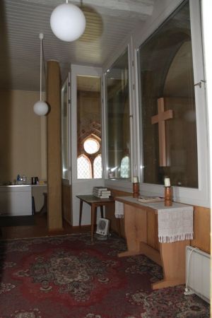 Westempore mit Winterkirche und Turmraum mit Gedenktafeln und Harmonium