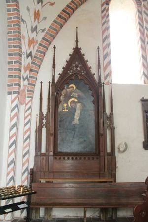 Der neugotische Altaraufsatz steht an der Südwand des Kirchenschiffs