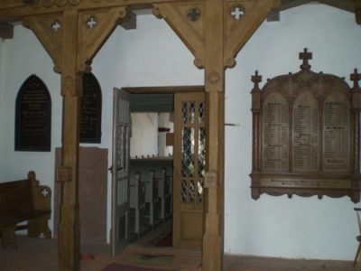 Im Turmraum hängen die Gedenktafeln für die in den zahlreichen Kriegen gefallenen Gemeindemitglieder