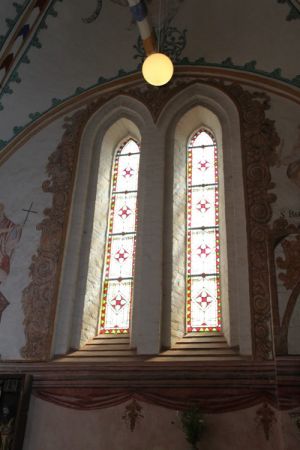 Die Aposteldarstellungen rahmen die Doppelfenster