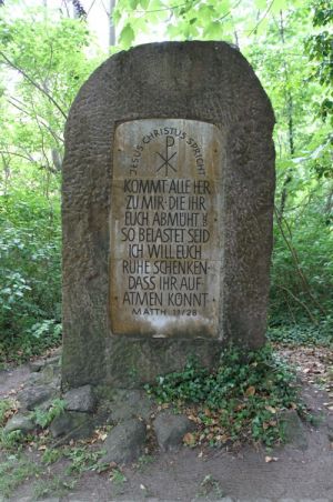 Unmittelbar neben dem Mausoleum der Familie Stever steht das Kriegerdenkmal für die Gefallenen des Ersten Weltkrieges, das als solches aber kaum erkennbar ist, da anstelle der Namenstafel eine veränderte Aufschrift angebracht wurde und das Eiserne Kreuz in der Spitze des großen Findlings entfernt wurde.