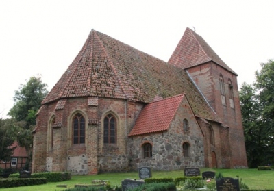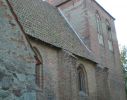 Ansicht von Norden Die Strebepfeiler am Chor sind einfach abgetreppt. Am Kirchenschiff sind die Stützpfeiler nicht abgetreppt ausgeführt. Im Allgemeinen weisen Strebepfeiler auf die im Innern befindlichen Gewölbe hin, da sie die einzelnen Joche abtrennen und den statischen Druck der Gewölbe aufnehmen. Die Sakristei an der Nordseite wurde aus Feldsteinen errichtet und im 18. Jahrhundert stark verändert. Am Schiff befindet sich auf der Nordseite auch ein kleines Portal. |