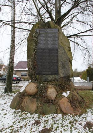 Das Kriegerdenkmal Das Kriegerdenkmal für die Gefallenen des Ersten Weltkrieges befindet sich nicht direkt am Kirchhof. Der große Findling steht ca. 100 Meter südlich vor der Kirche auf einem freien Platz an der Dorfstraße. Die Namensliste auf der Ehrentafel ist sehr lang, da auch die zum Kirchspiel gehörenden Dörfer Klein Sprenz, Kankel, Neu-Mistorf, Striesdorf, Siemitz, Sabel, Dolgen und Friedrichshof dort erwähnt werden. |
