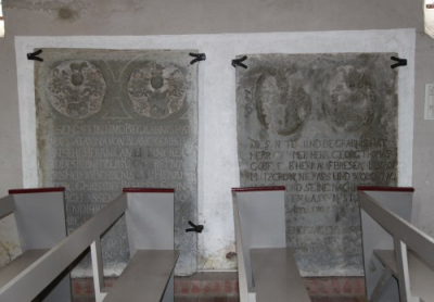 Die alten Grabplatten an den Wänden im Kirchenschiff
