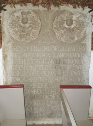 Die alten Grabplatten an den Wänden im Kirchenschiff