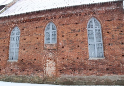 In der Traufzone des Schiffes verläuft ein in Resten erhaltener Zierfries aus Maßwerkziegel.
