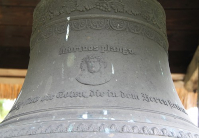 Der freistehende Glockenstuhl auf dem Friedhof vor dem Landeserntedankfest 2007 Unweit der Kirche auf dem Friedhof steht ein Glockenstuhl mit zwei Glocken; eine größere Eisenhartgussglocke und die etwas kleinere Bronzeglocke, 1895 gegossen bei Voss & Sohn in Stettin. Anlässlich des Landeserntedankfestes 2007 erhielt die Gemeinde eine neue Bronzeglocke. |