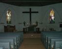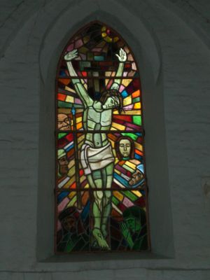 Zwei der spitzbogigen Chorfenster sind mit modernen Glasmalereien versehen, sie zeigen Darstellungen von Kreuzigung und Grablegung; die anderen Fenster im Altarraum sind zugesetzt.