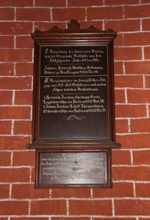 Vor der Kirche steht das Kriegerdenkmal - in der Kirche hängen die Gedenktafeln mit den Namen der Gefallenen