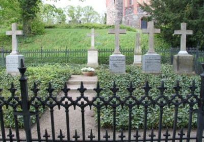 Das Friedhofsportal gibt Zutritt zum Friedhof - allgegenwärtig die Familie von Maltzahn