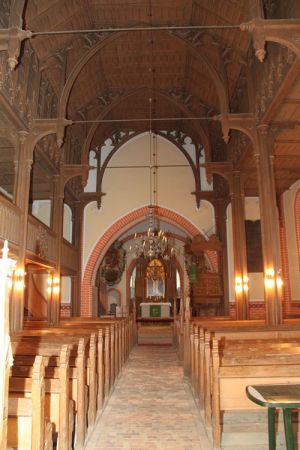 Die hölzerne Deckenkonstruktion im Stile englischer Gusseisenarchitektur