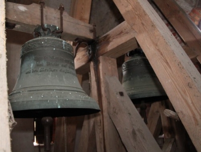 In der aus Backsteinen und durch Lisenen gegliederten Glockenstube hängen zwei Bronzeglocken, die 1929 von Christian Graf v. Bernstorff gestiftet wurden.